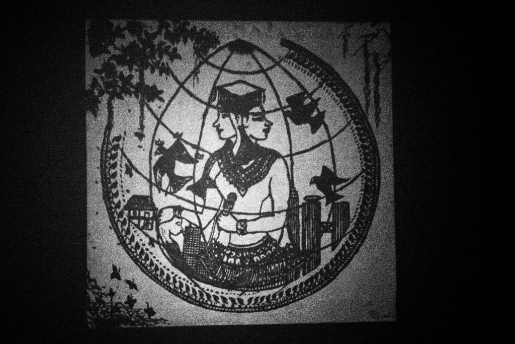 Seap Samnang,ย an architect and drawing teacher at a private school, andย Phon Dola, an accountant, collaborated to create a multimedia art piece made from recycled storyboard titledย โValue andย Commitment.โย