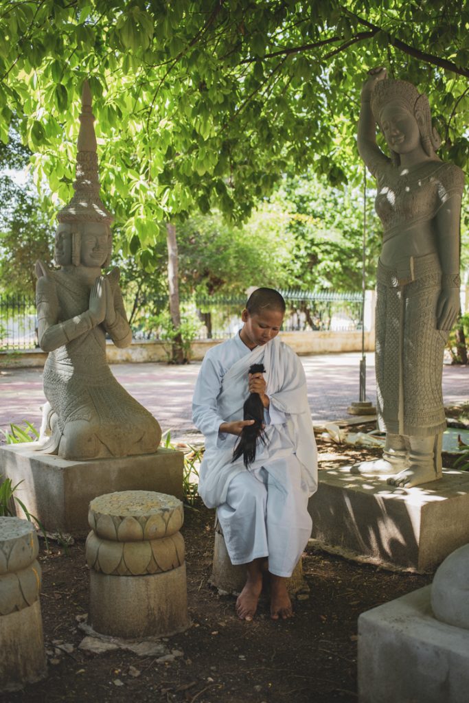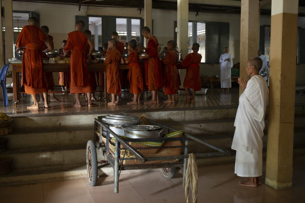 Kosorl, whose name means โvirtueโ in Pali, knew even as a child that she wanted to become a nun. After her parents separated, her mother decided to live in the pagoda, taking her young son with her, but her daughter stayed with her grandmother and was not allowed to follow the rest of her family into the monastery until she was 13. Kosorl remembers her first encounter with little monks well, who awakened in her the desire to be a child-monk as well. However, she was denied this wish because she was a girl. Despite this experience, or perhaps because of it, she held on to her desire to become a nun, but not like her mother, who, after separating from her father, decided to dedicate her life to monastic life and monks. Kosorl is the first Cambodian nun to go to Sri Lanka and study Pali and Buddhism at the university in Colombo. She also decided there to change the color of her robe from Cambodian white to Sri Lankan sapphire red. There she experienced a new form of equality. In the meantime, she is back in Cambodia, where she teaches and considers the lives of Cambodian nuns through her masterโs thesis and PHD.