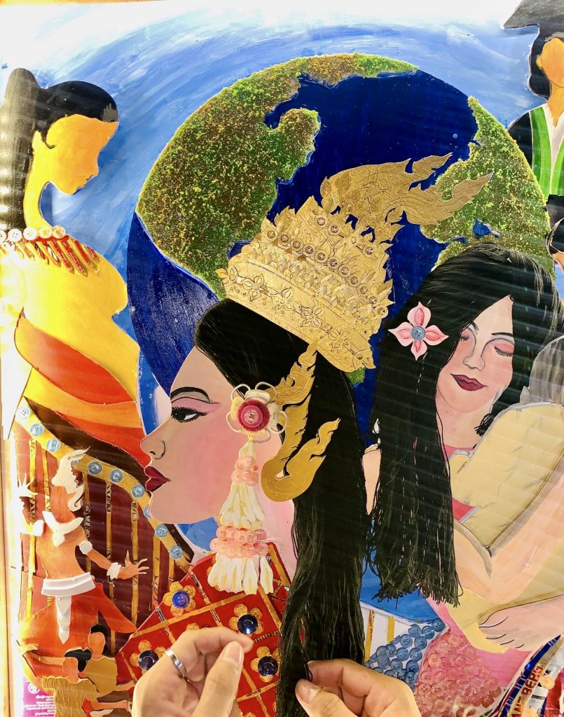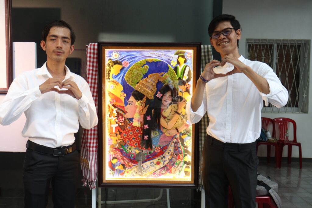 Roun Chanthou, a sculpture art student, is passionate about creating symbolic artworks on paper using a mix of colored pencils, watercolors, and other decorative materials. Her artwork called: โIf she was your relative?โ reflects different problems women and girls face, including abandonment, feelings of insecurity, or being the target for attack.