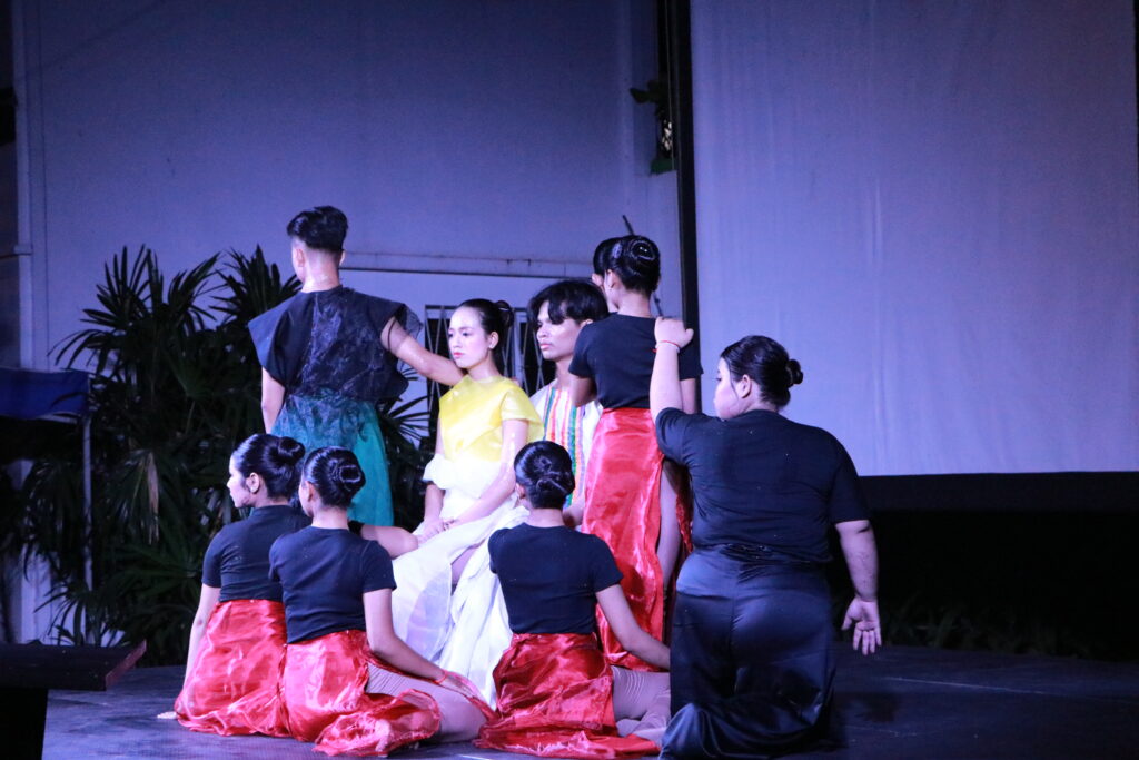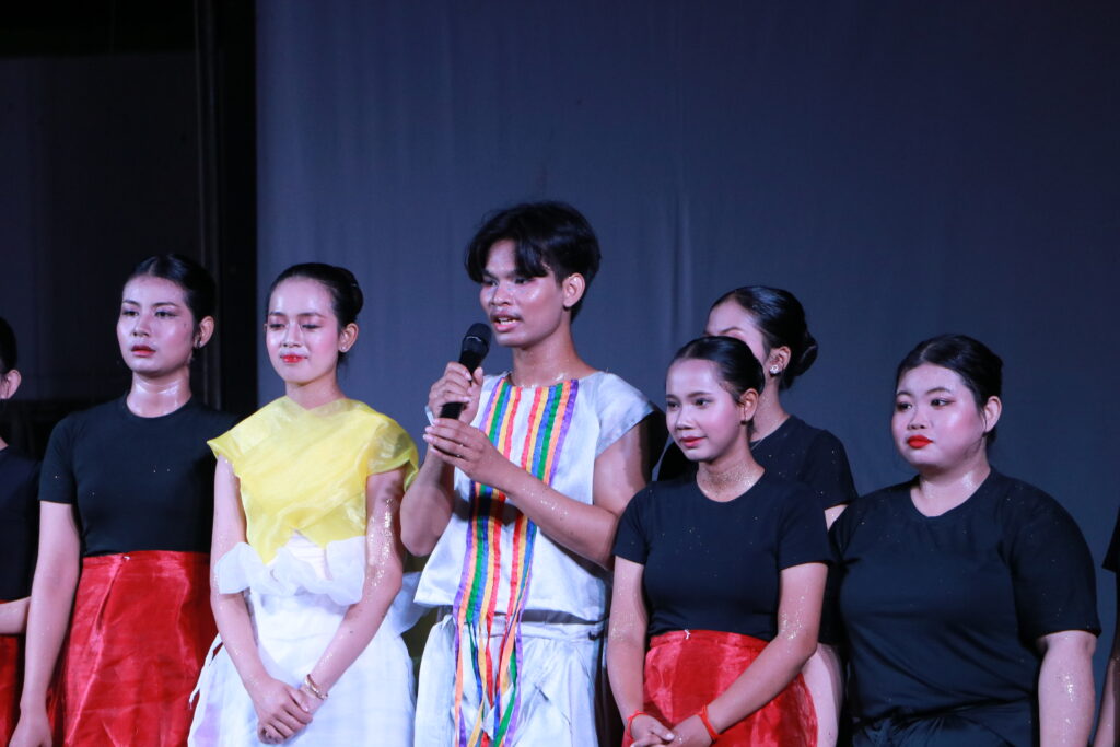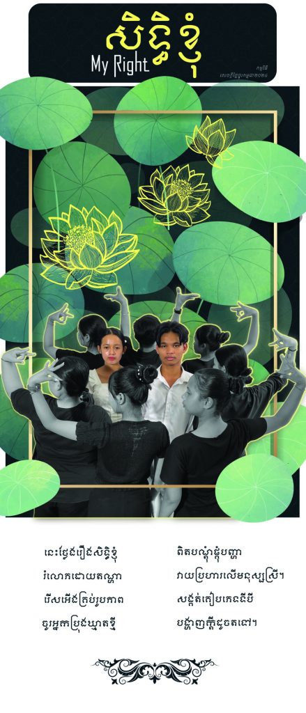 Sin Mao Theang, Chhit Sreyda,ย and their seven other group members, who are university students majoring in different fields of art, form a group calledย โMayurak.โย Guided by a skilled art teacher, they participate in the project using a contemporary dance performance titledย โMy Rights.โย This dance uses elements of traditional and modern dance, creating a unique and romantic style that illustrates different forms of gender-based discrimination against women and LGBTQ+ individuals. Through four distinct performances, they reflect social realities, blending text and poetry to create an engaging context. These performances convey the painful experiences of women and LGBTQ+ individuals and call for the elimination of all forms of gender-based discrimination.