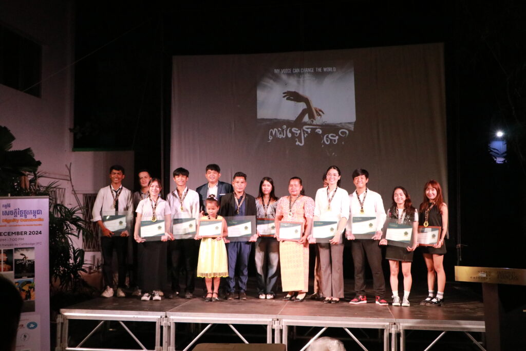 San Lynareach,ย a professional filmmaker, along with his freelance team membersย Duch Sreyphanin, Max Monica,ย andย Kong Raksmey,ย produced a short film titledย โHear My Voice? My Voice Can Change the World.โย This film features real stories about the social challenges young people face in the digital age, particularly gender-based violence on social media.